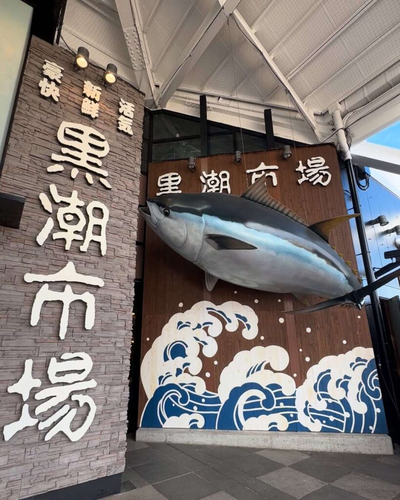 มาถึงตลาดสุดท้าย ตลาดปลาคุโรชิโอะ (Kuroshio Market) เป็นตลาดที่ได้รับความนิยมในภูมิภาคคันไซ มีบรรยากาศคล้ายสวนสนุกธีมอาหารทะเล จุดเด่นคือการแสดงแล่ปลามากุโร่ที่เป็นที่สนใจอย่างมาก และมีโซนที่สามารถซื้ออาหารทะเลแล้วนำไปย่างบาบีคิวเองได้ด้วย